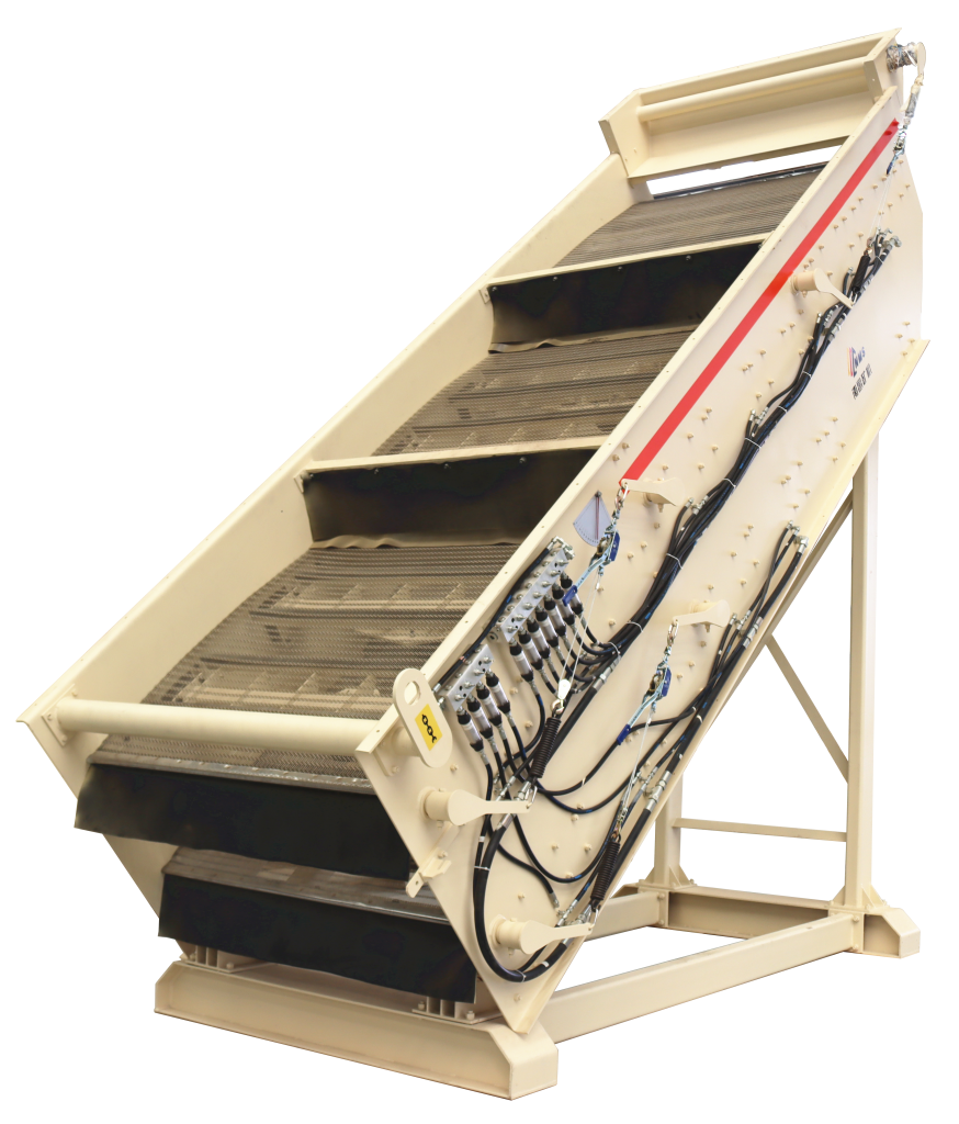 ? ? HFS液壓高頻篩采用原裝進(jìn)口液壓振動泵驅(qū)動,頻率可以通過調(diào)節(jié)液壓流量來調(diào)節(jié);利用先進(jìn)的篩分原理,使粗料被彈的更高,細(xì)料接觸篩面更頻繁;設(shè)備通過振梁拍打篩面實(shí)現(xiàn)高頻篩分,振動強(qiáng)度大,振動梁結(jié)構(gòu)簡單、可靠;快速便捷的篩網(wǎng)張緊機(jī)構(gòu),便于現(xiàn)場更換篩網(wǎng);具有先進(jìn)的液壓控制系統(tǒng),液壓系統(tǒng)主要部件均采用原裝進(jìn)口件;每個振動單元實(shí)現(xiàn)獨(dú)立調(diào)節(jié)控制,可滿足不同工況條件。