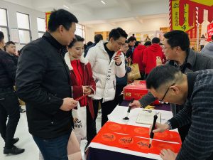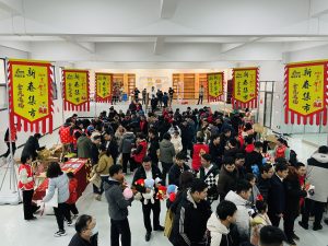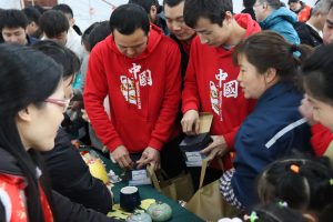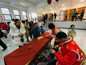 集市現(xiàn)場遍布中國紅,濃濃的年味撲面而來?!跋灿T”攤位前,書法老師現(xiàn)場揮毫潑墨,一副副飽含祝福與喜慶的對聯(lián)躍然紙上,一個個金色的“福”字充滿美好的寓意,大家領(lǐng)到了自己中意的春聯(lián),喜笑顏開;“飾飾如意”、“欣欣向絨”攤位備受喜愛,大家對精心準(zhǔn)備的禮品愛不釋手;“吃貨”們則被“幸福味道”攤位吸引,極具江西特色的特產(chǎn)小吃極受歡迎;“編福送財”攤位上,南礦才華滿溢的員工正根據(jù)需求飛快編織手工藝品;“快樂套圈圈”、“拾光”、“福滿窗”等攤位也人氣十足,在歡快的歌聲中,四處洋溢著歡樂和喜悅,其樂融融。